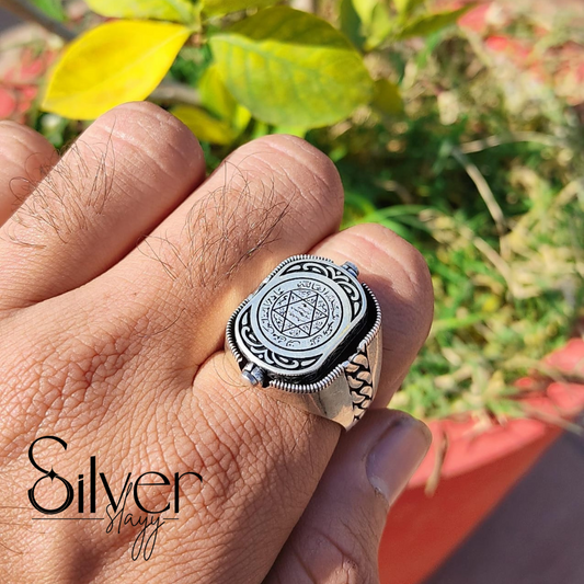SilverSlayy Sterling Silver Black Stone Ring – Regal Design with Intricate Details
