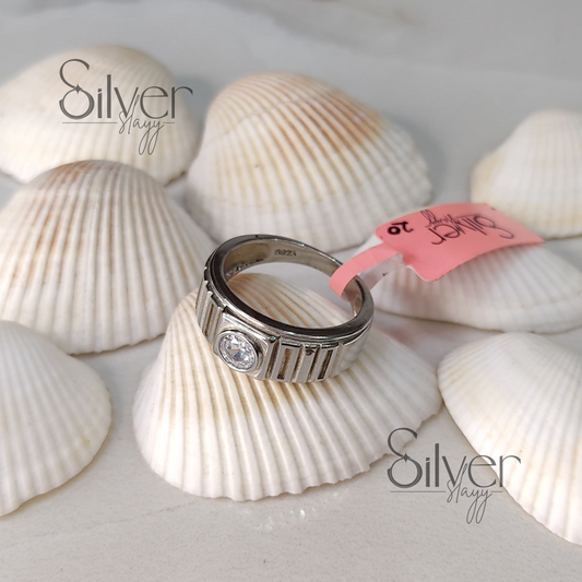 Men's 925 Sterling Silver Ring with Single Crystal Accent and Textured Band – Minimalist and Stylish