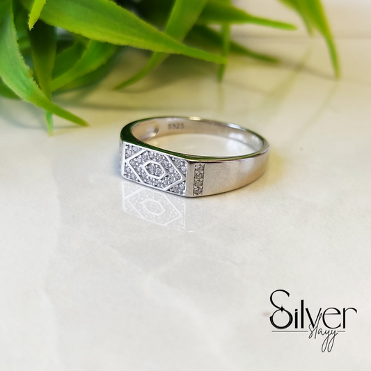 SilverSlayy Premium Sterling Silver Men's Ring – Bold Design with Sparkling Accents