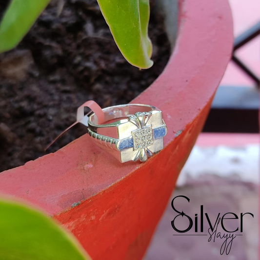 Square CZ Silver Ring | Handcrafted Sparkling Jewelry by SilverSlayy