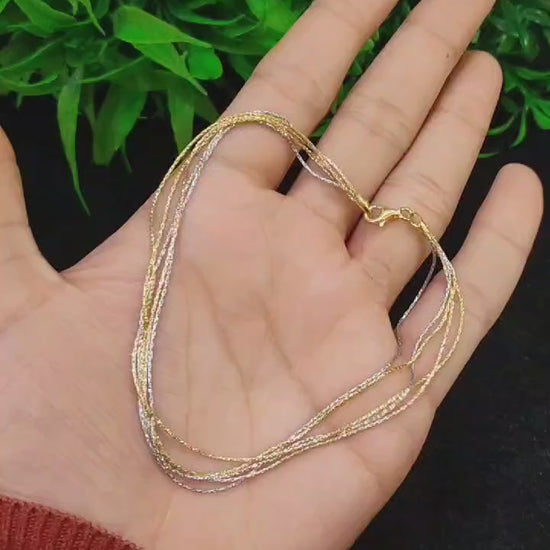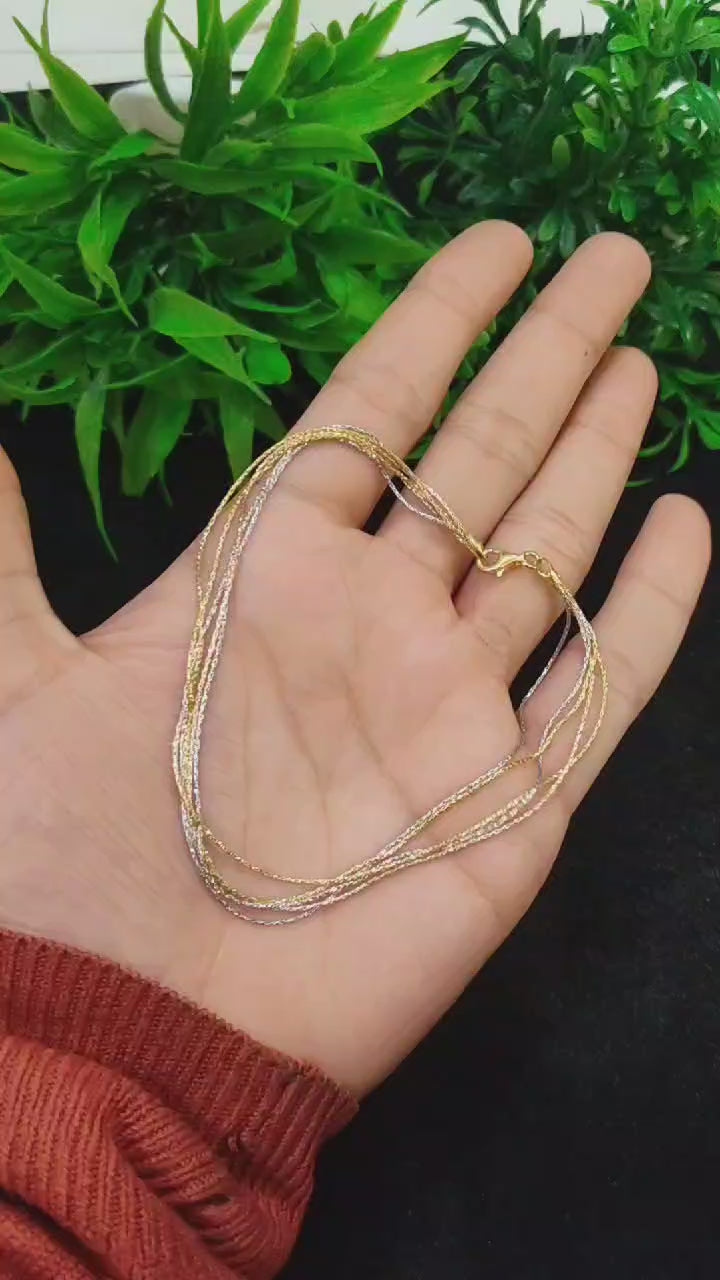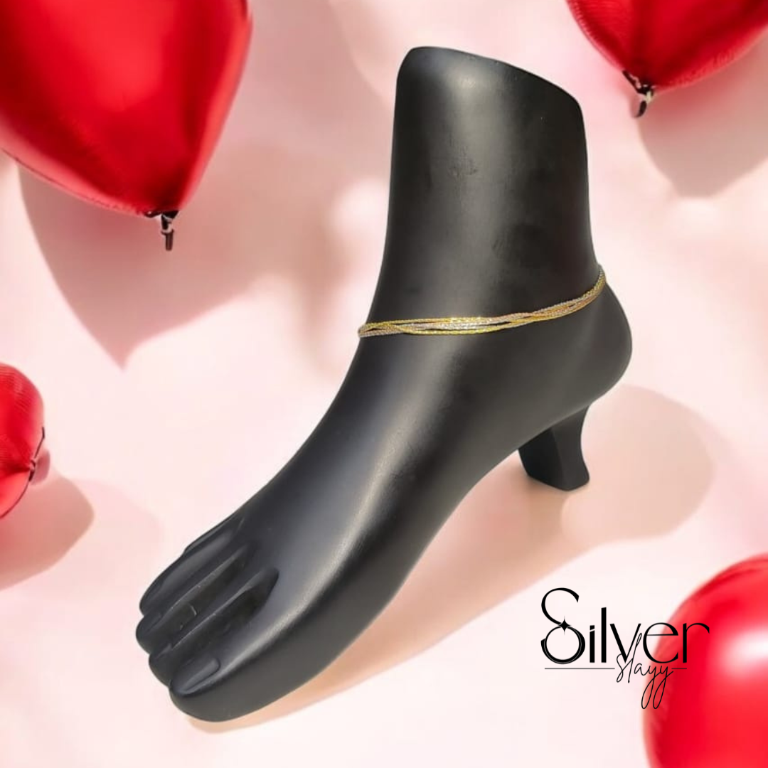 Upgrade your jewelry collection with this luxurious Italian premium anklet, crafted from 92.5% pure silver and designed with 5 delicate layered chains for an elegant, lightweight, and stylish look. The tri-polish finish blends silver, gold, and rose gold tones, creating a sophisticated and modern accessory perfect for any occasion.