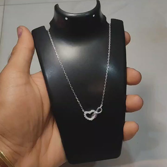 Celebrate eternal love and elegance with this 925 Sterling Silver Heart & Infinity Pendant Necklace. The 18-inch adjustable Italian Dokia chain adds a touch of sophistication, making it a perfect gift for your loved one.