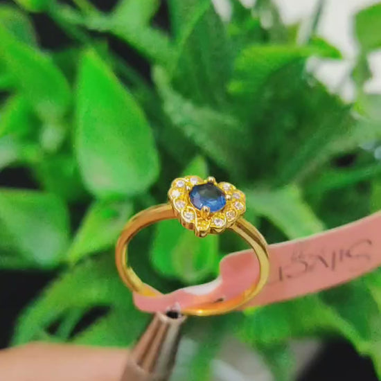 πŸ’™ Gold Plated Heart Ring with Blue Sapphire Stone | Elegant & Timeless Jewelry