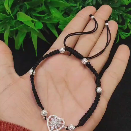 Elevate your style with our 65% Pure Silver Adjustable Thread Anklet, designed to add charm and elegance to your everyday look. Featuring a beautifully crafted heart-shaped charm with intricate detailing and a delicate pink bead drop, this anklet is perfect for both casual and festive occasions. The durable black thread offers an adjustable fit, ensuring comfort and style in one.