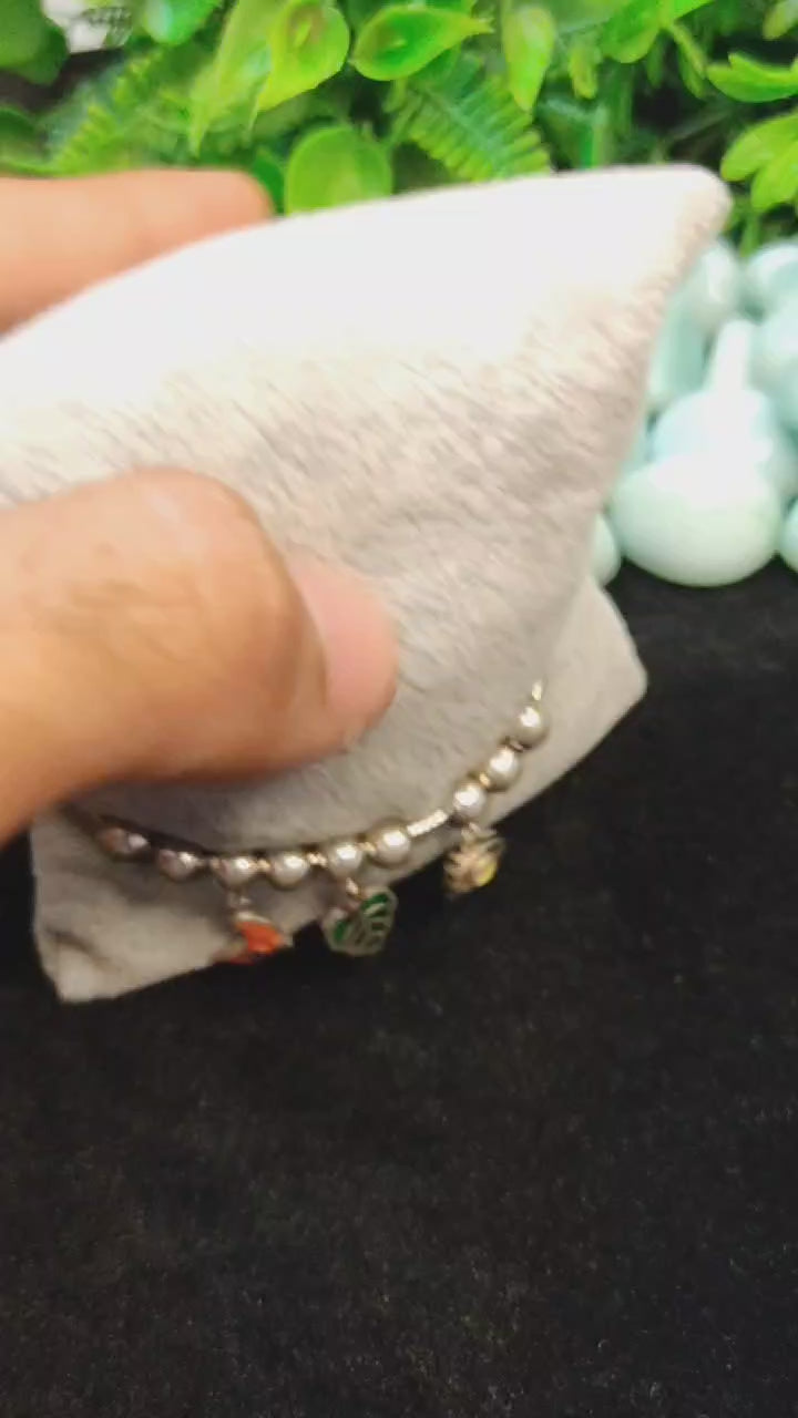 Add a playful touch to your look with SilverSlayy’s beaded charm bracelet, crafted in genuine 925 silver for women and girls. This bracelet features a series of silver beads with unique, colorful charms, including a moon, leaf, and protective eye, adding personality and flair to any outfit. Designed in a free size, it comfortably fits most wrists, making it perfect for daily wear or as a thoughtful gift.