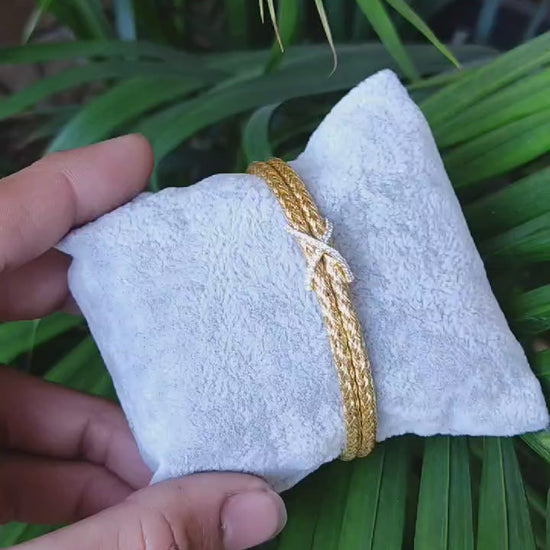 Enhance your jewelry collection with this elegant 925 Sterling Silver Bracelet featuring a luxurious gold polish finish. Designed with an intricate woven pattern and adorned with a dazzling "X" centerpiece, this bracelet is perfect for both festive and everyday wear. The openable lock system ensures ease of use and a secure fit, making it an ideal accessory for women who value comfort and style.