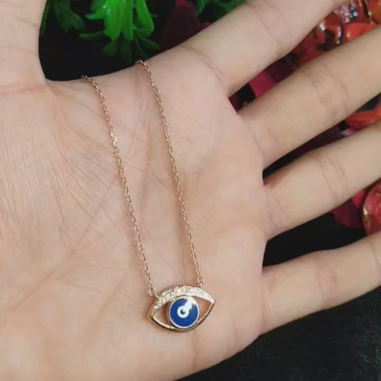 925 Sterling Silver Evil Eye Pendant Chain | Rose Gold Finish | Protective Necklace
