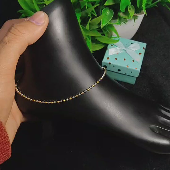 925 Sterling Silver Italian Anklet ā Two-Tone Gold & Silver Beaded Chain
