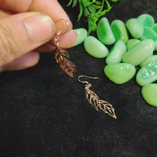 925 Sterling Silver Leaf Dangle Earrings | Elegant Gold Polish Finish