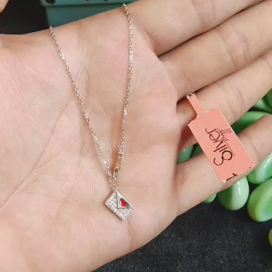 925 Sterling Silver Love Letter Envelope Pendant Necklace for Girls – Romantic Red Heart Charm | Silverslayy