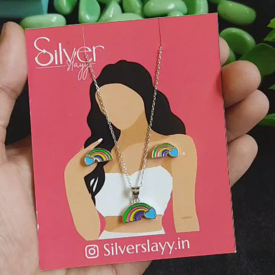 925 Sterling Silver Rainbow Pendant Set for Girls – Vibrant | Silverslayy