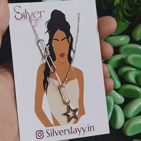 925 Sterling Silver Star Pendant Chain Necklace for Girls – Trendy Paperclip Link Chain with Star Charm | Silverslayy