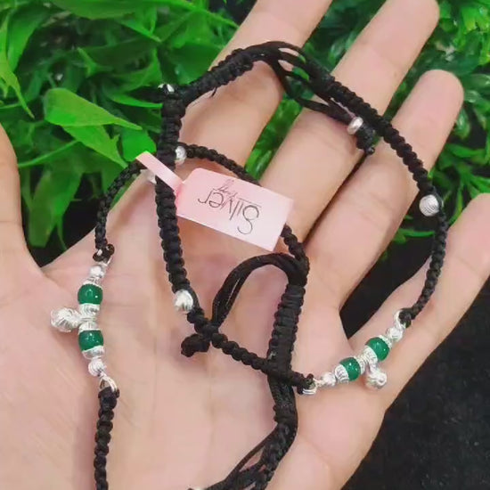 Upgrade your jewelry collection with this elegant black thread anklet, featuring 65% silver beads and green accents for a fresh and trendy look. The adjustable design ensures a comfortable fit, making it perfect for daily wear or special occasions.