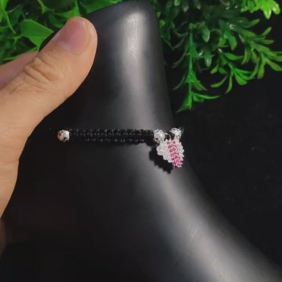 Black Thread Anklet with Silver & Pink Heart Charm β Adjustable & Stylish