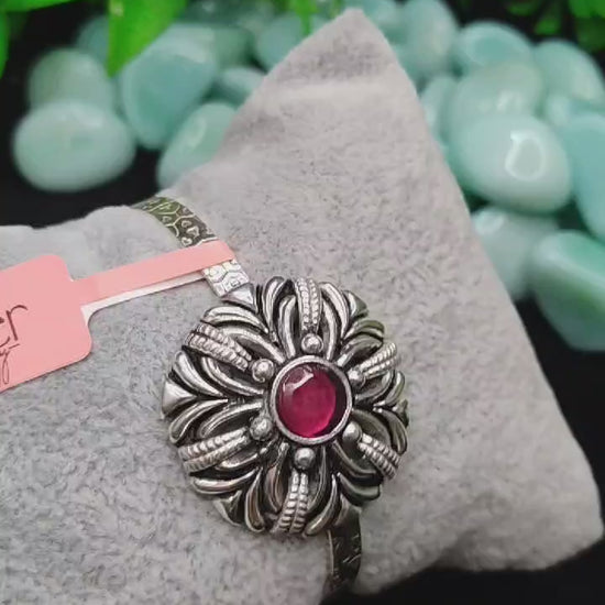 Turn heads with SilverSlayy’s bold pink stone bracelet, crafted for women and girls who love unique and eye-catching accessories. Featuring a vibrant pink gemstone set in an intricate silver-toned floral design, this free-size bracelet adds a touch of elegance and charm to any outfit. Perfect for special occasions or everyday glamour, this bracelet is a beautiful fusion of modern style and classic appeal.