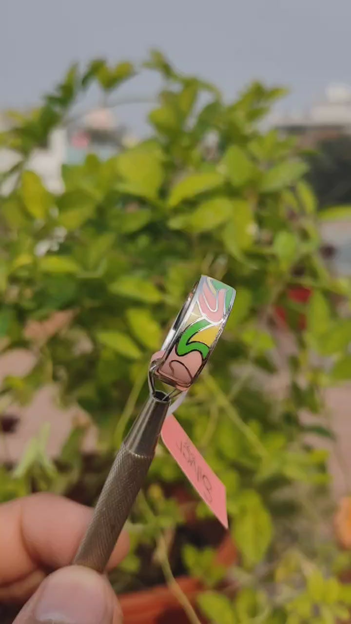 Add a pop of color to your style with this Colorful Enamel Sterling Silver Band Ring from Silverslayy. Featuring vibrant enamel patterns in shades of pink, green, and yellow, this sleek band is crafted from premium sterling silver, offering durability and a smooth, comfortable fit. Perfect for casual wear, office looks, or as a unique accessory for your everyday outfits, this ring is a modern take on timeless elegance. A versatile addition to your jewelry collection, it comes in a premium gift box for an elevated gifting experience. Order now from Silverslayy and redefine your everyday style!