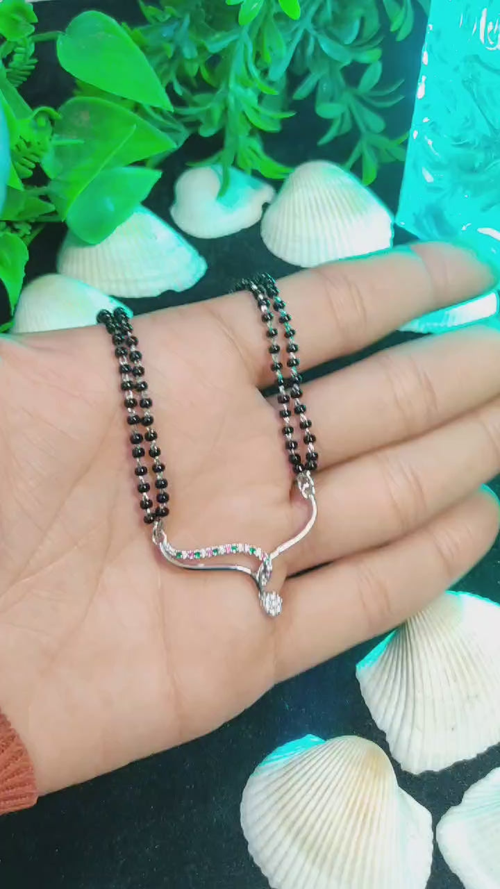 Double-Layered Silver Mangal Sutra with Colorful Accents | Elegant Jewelry by SilverSlayy