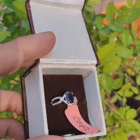 Add a touch of luxury to your look with this stunning blue sapphire girls cocktail ring. Featuring a brilliant oval sapphire centerpiece surrounded by sparkling crystals, this ring is crafted with a unique twisted band design for extra elegance. Perfect for special occasions, proms, or casual glam, this lightweight and durable ring offers comfort without compromising on style. A timeless statement piece that makes the perfect gift! Shop now at Silverslayy for affordable luxury and free shipping on select orders.