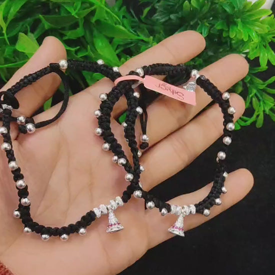 Add a touch of elegance to your feet with this handcrafted thread anklet featuring 65% pure silver beads.