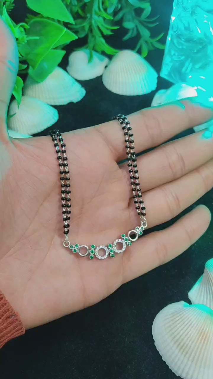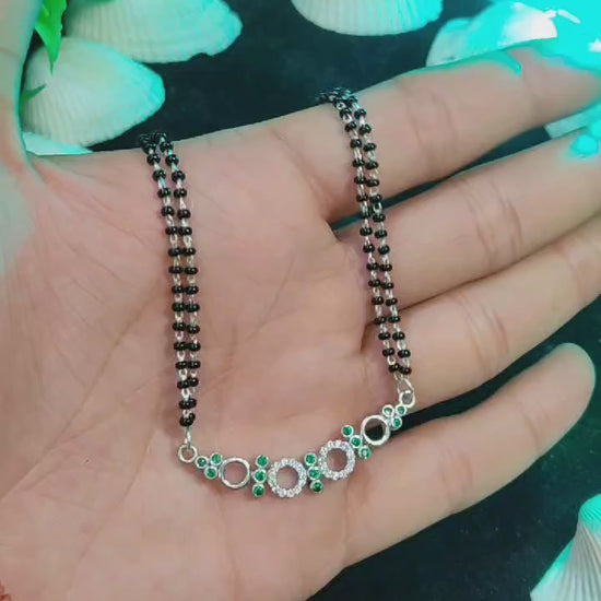 Exquisite Green Stone Silver Mangal Sutra | Jewelry by SilverSlayy