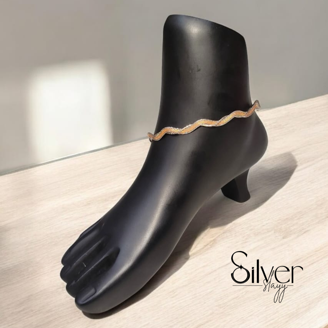 Italian 92.5% Silver Wavy Anklet β Rose Gold Polish, Elegant & Stylish (10.25 Inches)