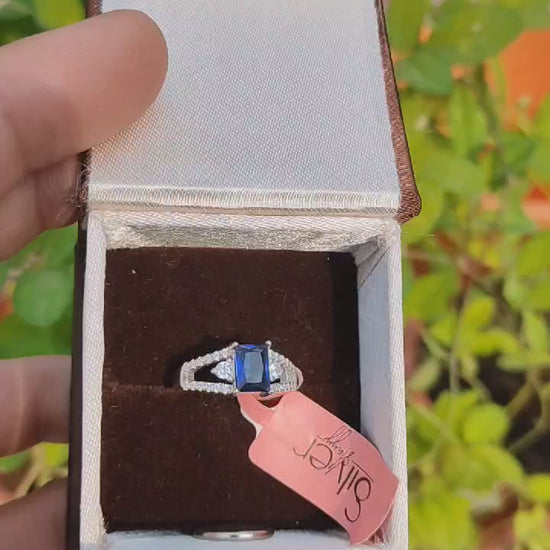 Luxurious Blue Sapphire Sterling Silver Ring for Women – Perfect for Weddings & Gifts | Silverslayy