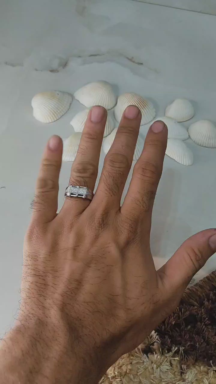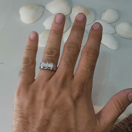 Men's 925 Sterling Silver Ring with Rectangular Crystal Pavé – Bold and Refined Style