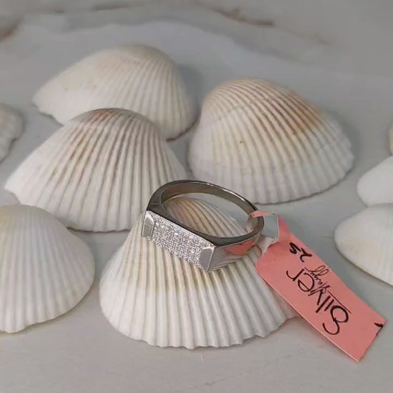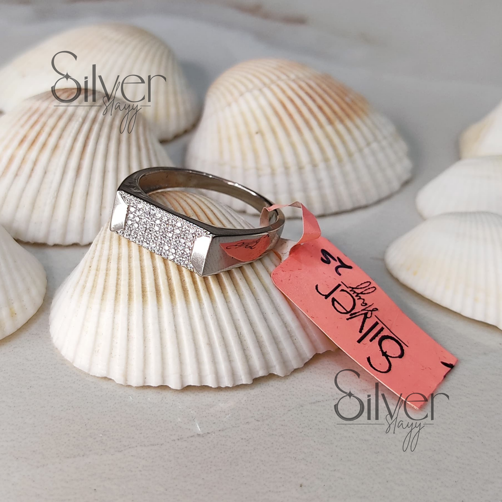 Men's 925 Sterling Silver Ring with Rectangular Pavé Crystal Panel – Sleek and Sophisticated Design