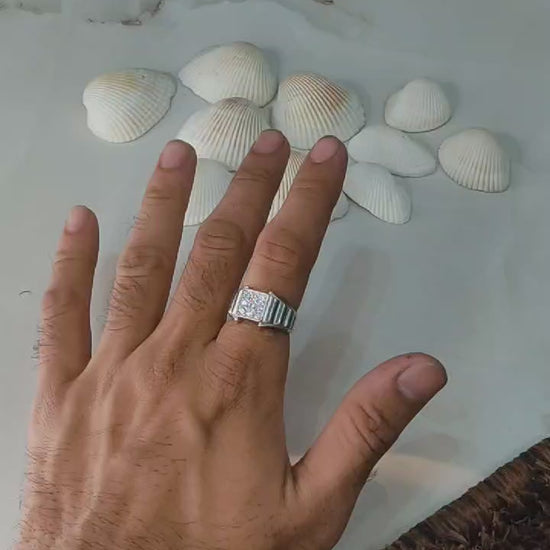 Add sophistication to your collection with this 925 sterling silver men's ring, featuring a bold square crystal cluster centerpiece set against a textured, grooved band for a modern touch. Crafted from high-quality sterling silver, this ring is hypoallergenic and built for comfort, durability, and a lasting shine. Ideal for both casual wear and formal occasions, it’s perfect for the man who appreciates standout accessories or as a memorable gift for any special occasion.