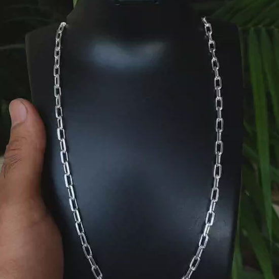 Men's Stylish Silver Chain - Modern Rectangular Link Design