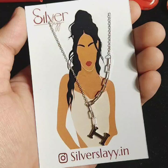 Show off your personal style with this sleek 925 sterling silver necklace, featuring a bold "H" initial pendant. The 18-inch chain is designed with unique silver links, adding a contemporary twist to this classic initial necklace. Perfect for anyone whose name begins with "H" or as a thoughtful, personalized gift.
