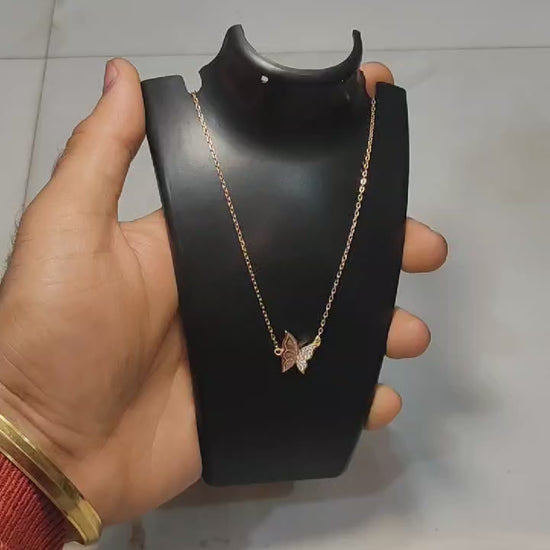 Elevate your elegance with this stunning Rose Gold Butterfly Pendant Necklace featuring a pure 925 Sterling Silver Italian Dokia Chain. The 18-inch adjustable length offers a perfect fit for any occasion, making it a must-have jewelry piece.