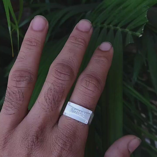 Step into sophistication with SilverSlayy's sterling silver band ring. Featuring a sleek rectangular design and a brilliant line of sparkling stones, this ring is the perfect blend of minimalism and elegance. Ideal for modern style enthusiasts, it's a versatile accessory for any occasion. Elevate your jewelry game—shop this timeless masterpiece now at SilverSlayy!
