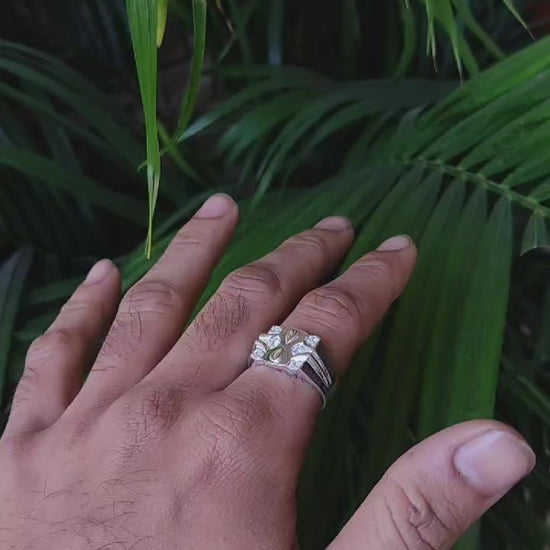 Unveil the beauty of artistic craftsmanship with SilverSlayy's sterling silver ring. Featuring a distinctive, intricate design accented with shimmering stones, this piece is a blend of tradition and modern elegance. Perfect for making a bold yet refined style statement, it’s the ideal accessory for those who appreciate unique jewelry. Shop now and own a timeless treasure with SilverSlayy!