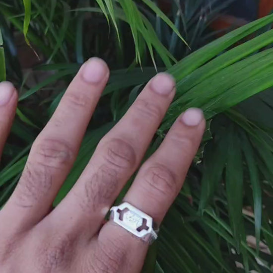 Make a bold statement with SilverSlayy's sterling silver hexagon ring. This modern masterpiece features a sleek hexagonal design with a dazzling stone-studded centerpiece, perfect for those who value unique craftsmanship. A versatile accessory that seamlessly complements any attire, this ring is a must-have for your jewelry collection. Shop now and embrace timeless elegance with SilverSlayy!